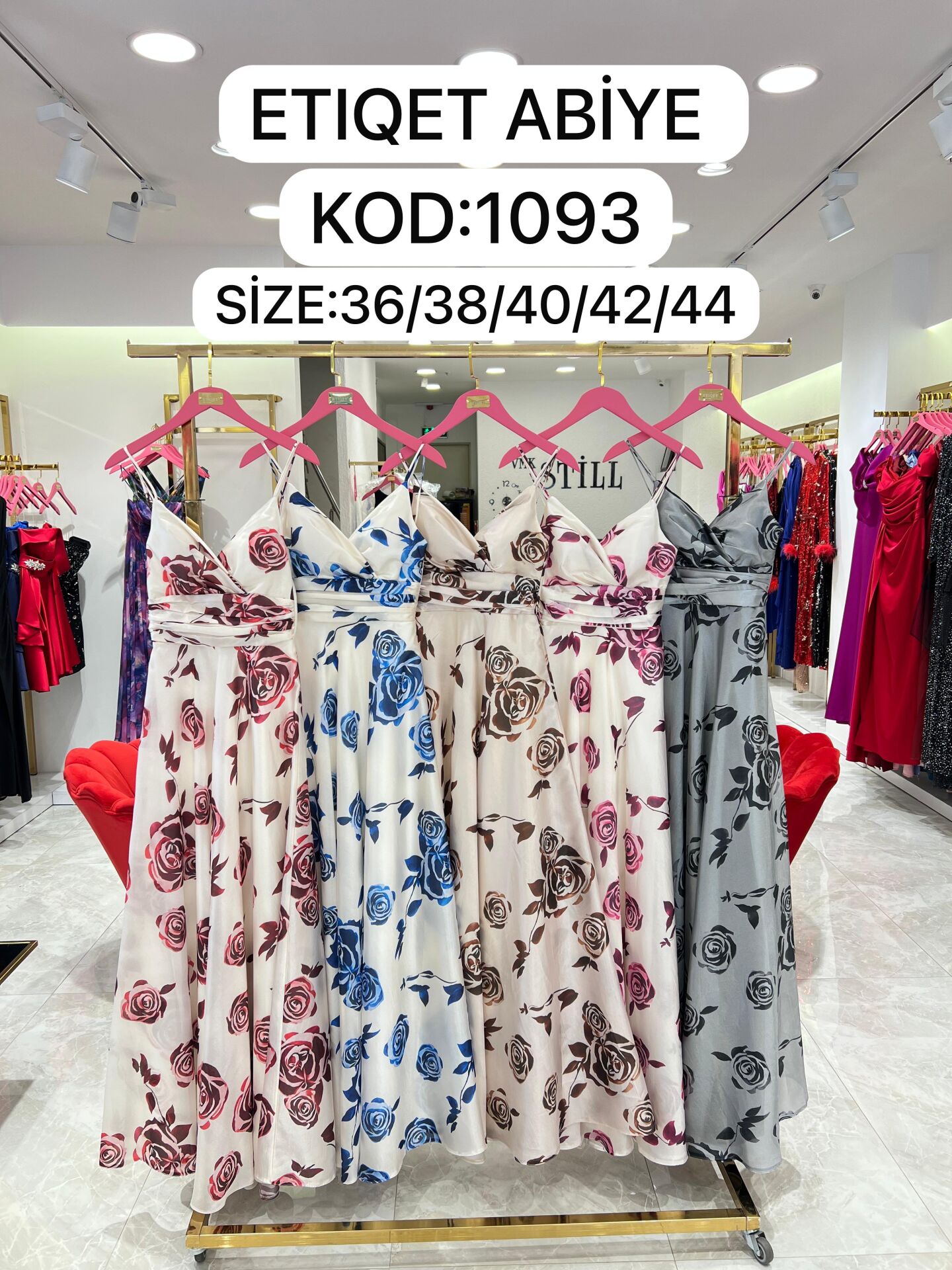 Kristal Desen Çiçek Detaylı Saten Abiye | 1093