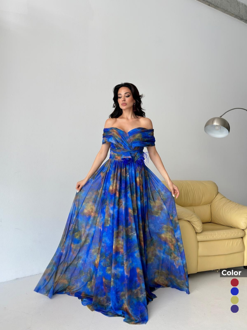 Tül Desenli Starplez Çiçekli Abiye | 1102