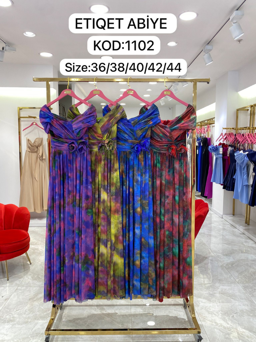 Tül Desenli Starplez Çiçekli Abiye | 1102 X5Z6URU755 Tül Desenli Starplez Çiçekli Abiye | 1102