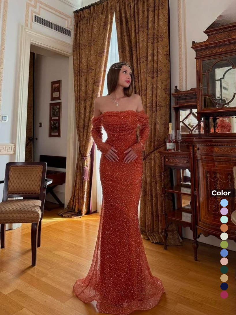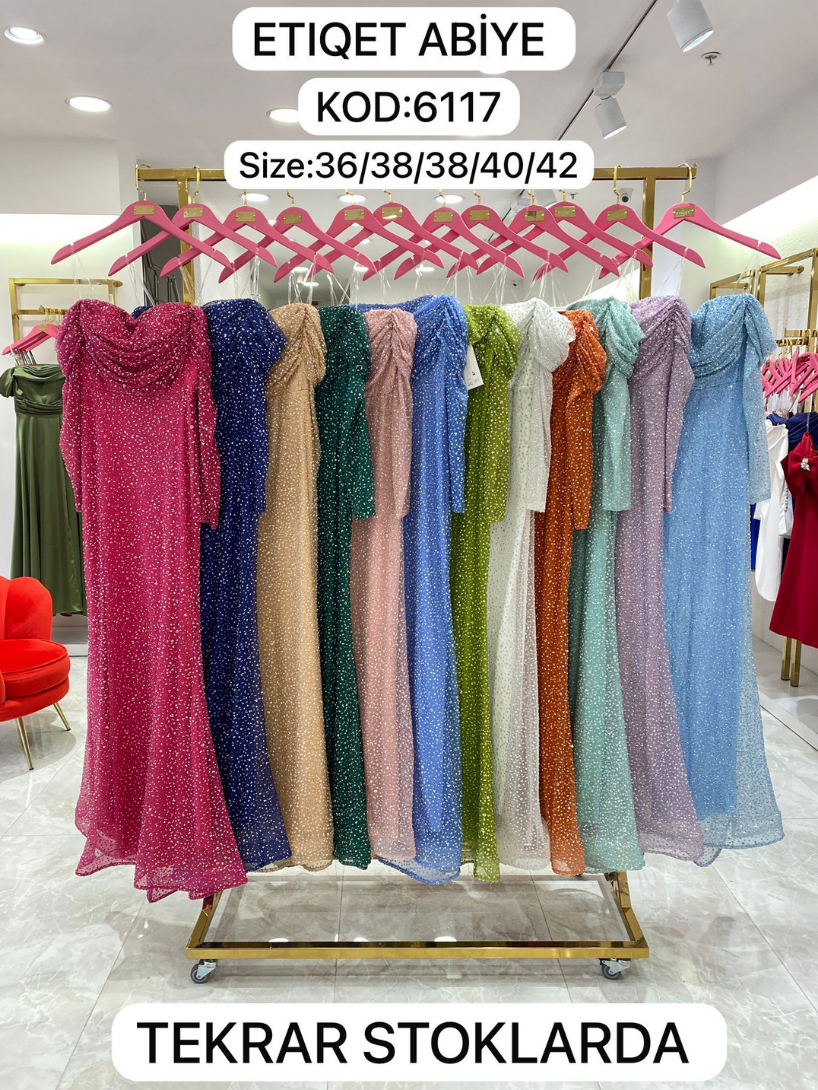 Kayık Yaka Taşlı Abiye Elbise | 6117